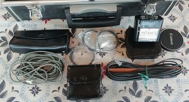 CANON DS8 - Cinepresa macchina da presa per film in pellicola passo Doppio Super 8. Completa di custodia e accessori: obiettivo, 3 filtri, portafiltri, cavo di controllo remoto, telecomando, 2 chiavi per la custodia, porta batterie (8 classiche pile stilo) e 2 manuali di istruzioni. Ideale per cineasti e registi che desiderano avvicinarsi al mondo della pellicola analogica. Condizioni generali buone, con normali segni di usura dovuti all'età e all'utilizzo. Per quanto riguarda la funzionalità: non ho testato la cinepresa con un alimentatore e un cavo di alimentazione perché non ne possiedo uno e non conosco il connettore per il pacco batterie. Tuttavia, ho utilizzato il porta batterie per lo stilo (che richiede 8 batterie) situato nella parte superiore della custodia: il motore si accende e gira, ma se si sposta leggermente il selettore oltre il segno centrale, aprendo il vano della pellicola, si sente il motore in funzione, ma il rocchetto non gira. Non so se sto sbagliando qualcosa, se c'è qualcosa che devo controllare o se forse funziona perfettamente con una batteria esterna e il cavo collegato a questa presa. Per questo motivo la vendo come parzialmente funzionante e comunque da revisionare. LEGGERE BENE PER EVITARE EQUIVOCI A richiesta posso inviare un video test in cui la mostro in funzione per come l'ho descritta Pagamento unicamente con Bonifico Bancario (ammesso da Subito.it) NO TUTTOSUBITO NO PROPOSTE.