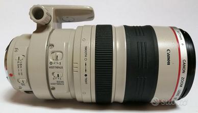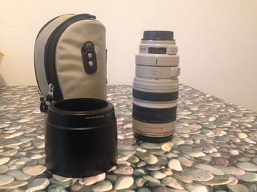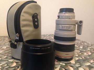 Teleobbiettivo zoom 100-400 Canon EF 100-400L IS USM, diametro filtri 77mm. Perfette condizioni, con custodia e tracolla originali. Ritiro esclusivamente a mano per consentire verifiche e test del prodotto.