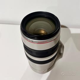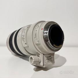 Obiettivo Canon EF 100 400 mm f 4.5 5.6 L IS USM prima serie, ottime condizioni, lenti perfette e nessun graffio, autofocus e stabilizzatore funzionanti. Comprende paraluce, tappi, anello e custodia originali.