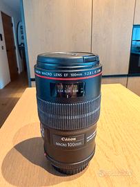 Canon EF 100mm f/2.8 L IS USM Macro Vendo obiettivo Canon Macro 100mm serie L, stabilizzato, in condizioni pari al nuovo. Usato pochissimo e sempre con massima cura. 🔹 Modello: Canon EF 100mm f/2.8 L IS USM 🔹 Tipologia: Macro professionale (serie L) 🔹 Stabilizzazione: IS integrata 🔹 Stato: pari al nuovo 🔹 Lenti perfette, nessun graffio o segno 🔹 Completo di paraluce originale (ET-73) Ideale per macro e ritratti con qualità professionale.
