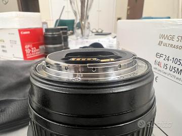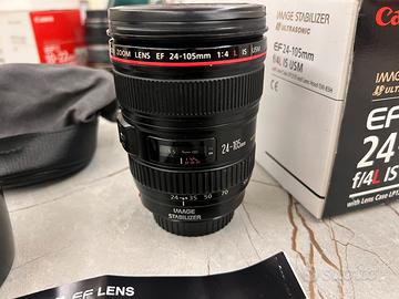 Vendo obiettivo Canon EF 24-105 F/4 L IS USM in ottime condizioni, completo di accessori originali (paraluce Canon EW-83H, sacca di trasporto, manuale) e confezione originale.