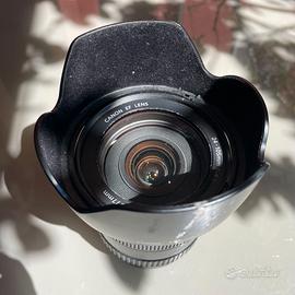 Completo di paraluce originale, sacchetto Canon e tappi.