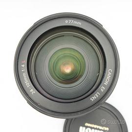 Obbiettivo Canon EF 24-105mm f/4L IS USM in ottime condizioni estetiche e di funzionamento, lenti pulite e prive di muffa ma con minimi segni su quella frontale (ininfluenti sulle foto). Venduto con tappi originali. Compatibile con tutte le macchine Canon full frame e APS-C (con lunghezza focale equivalente a circa 38-170 mm). Contattatemi pure per qualsiasi dubbio e non dimenticate di dare un'occhiata anche al resto dell'attrezzatura fotografica che ho in vendita.