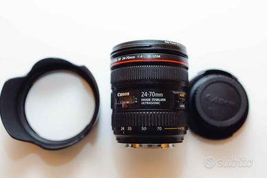 Vendo obiettivo professionale Canon EF 24-70mm f/4L IS USM per passaggio a sistema differente. Funziona tutto alla perfezione l'autofocus è una scheggia e lo stabilizzatore aiuta tantissimo nei video o con poca luce. Esteticamente ha i suoi classici segni di utilizzo, ma nulla di che. Le lenti sono pulite e non hanno graffi. Ha anche la funzione Macro che è comodissima per fare foto molto da vicino. Oltre all'obiettivo ti lascio il suo paraluce originale e i tappi. Disponibile per qualsiasi prova, scambio a mano su Roma.