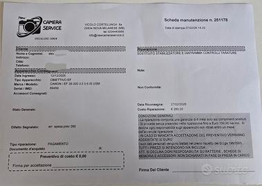 • Autofocus e stabilizzatore perfettamente funzionanti