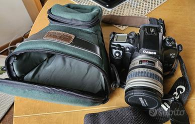 Macchina fotografica Canon EF 30 completa di obiettivo zoom EF24-85 mm f 3,5-4-5 e custodia a tracolla . Imballi originali . Mai usata .