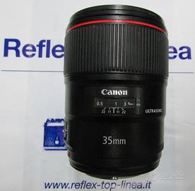 Obiettivo originale Canon EF 35 mm f/1.4L II USM dedicato per fotocamere Reflex Canon EOS. Prodotto usato in buone condizioni estetiche e ben funzionante. Garanzia di mesi sei presso Reflex Top Linea sui difetti di funzionamento.