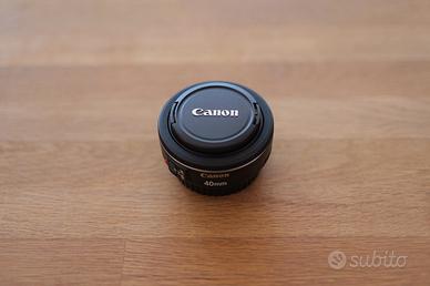 Obiettivo Canon EF 40mm f/2.8 STM, lenti e funzionamento perfetti, sempre utilizzato con il filtro protettivo nella lente frontale, con tappi e scatola originale.