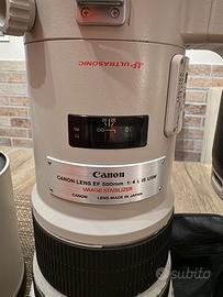Vendo obiettivo Canon EF 500mm L IS USM in ottime condizioni, perfettamente funzionante. Completo di paraluce, tappo e valigia originali + rivestimento mimetico in neoprene. Nesun graffio o muffe, normali segni di usura, disponibile per qualsiasi prova su appuntamento. Vendo per passaggio a ottica RF.