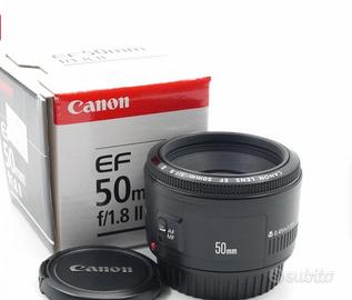 Vendo obiettivo Canon EF 50mm f/1.8 II, compatibile con tutte le fotocamere Canon con attacco EF (full-frame e APS-C).