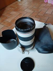 obbiettivo canon ef 70/200 f2.8 IS usato pochissimo e tenuto sempre con lente UV per proteggere la lente. completo di tutto sacca e scatola. solo consegna a mano