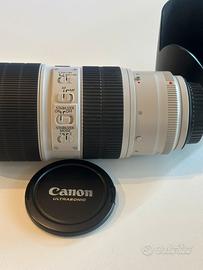 Vendo obiettivo Canon EF 70-200mm f/2.8L IS, telezoom luminoso serie L pro, ottime condizioni uso amatoriale. AF stabilizzatore pertetti. Incluso paraluce originale + borsetta. EF full frame/APS-C. Ritiro mano Milano o Tutto Subito.