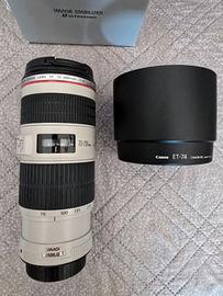 Vendo splendido obiettivo Canon EF 70-200mm f/4L IS USM, un'ottica professionale della serie L (anello rosso) rinomata per la sua nitidezza leggendaria e la leggerezza. Ideale per ritratti, sport e fotografia naturalistica. obiettivo PARI AL NUOVO Cosa è incluso nella vendita: Obiettivo Canon EF 70-200mm f/4L IS USM. Paraluce originale Canon ET-74. Tappi anteriore e posteriore originali. Scatola originale con manualistica con la sua sacca. Anello per treppiede .