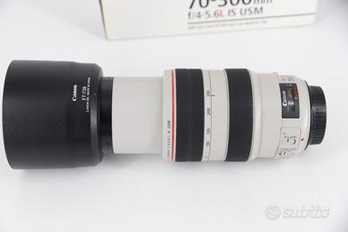 Canon EF 70-300 mm. f.4-5,6 L IS USM, in perfette condizioni, usato pochissimo, completo di tutto : imballo, tappi, sacchetto, paraluce più staffa per treppiede.