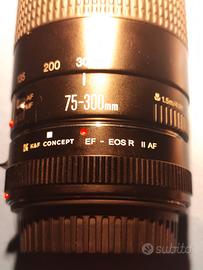 Obiettivo Originale Canon EF 75-300mm f5.6 Autofocus, venduto insieme all'adattatore K&F (Autofocus) da EF ad RF per Canon EOS R.