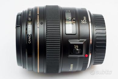 Vendo Canon EF 85mm f/1.8 USM usato in ottime condizioni. Lenti perfette, prive di abrasioni e infestazioni fungine, qualche punto di polvere come da norma ma che non influisce minimamente sulla qualità dell'immagine. AF e meccanismo del diaframma perfetti. Testato e perfettamente funzionante anche adattato su corpi R-mount tramite anello adattatore originale Canon EF-R (non incluso). Completo di tappi F/R e paraluce (di terze parti), me ne separo a malincuore unicamente per passaggio ad altro sistema.