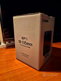 Vendo Canon EF-S 18-135 mm f/3.5-5.6 IS USM in ottime condizioni acquistato circa 2 anni fa. L'obiettivo è compreso di tappi originali e scatola originale