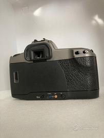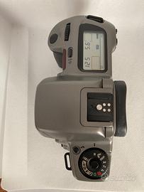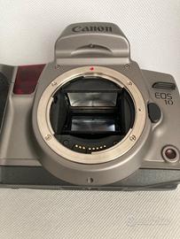 Fotocamera Canon EOS 10 reflex analogica 35mm. Buone condizioni, l’ottica del mirino è in buono stato, non c’è nebbia, non ci sono funghi. Tutte le funzioni come l’otturatore, l’esposimetro e la messa a fuoco automatica funzionano perfettamente. La fotocamera è stata testata con rullino e caricamento, avanzamento e riavvolgimento automatico funzionano perfettamente; il led esterno funziona perfettamente mentre il led interno all’accensione della fotocamera risulta flebile ritornando normale dopo circa 5-10 minuti, vedere le 2 ultime foto. Disponibile all’invio di altre immagini.