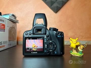 Fotocamera Canon EOS 1000D con obiettivo 18-55mm IS stabilizzato funzionante in condizioni estetiche con segni di usura dati dal tempo come mostrato in foto.