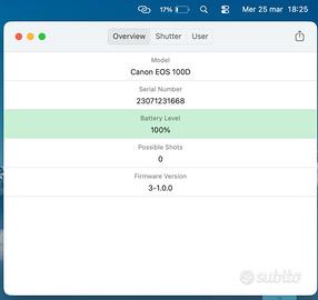Vendo per passaggio a mirrorless Canon EOS 100D come nuova (3900 scatti misurati con Shuttercount) conprensiva di batteria, caricatore e tracolla originali.