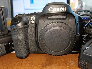 Semiprofessionale Canon EOS 10d con battery grip BG ED3 in buonissime condizioni come in foto. presenti: caricabatterie doppio Canon originale due batterie nuove di terze parti tappo copri bocchettone