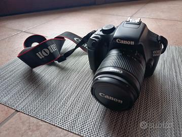 Canon eos 1100d con obbiettivo 18-55, accessoriata con scheda sd da 4 gb e caricabatterie. Tutti i cavi sono in dotazione. La macchina è perfettamente funzionante, vendo per inutilizzo.
