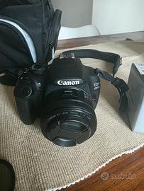 vendo canon eos 1200 D con due obbiettivi un 18-55 f2.4 e un 50mm f 1.4, completa con borsa caricatore e tracolla, filtro ND da 3 stop. macchina usata pochissimo , nessun segno di usura .