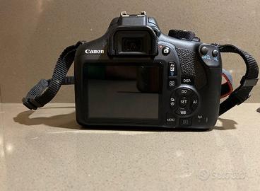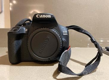 Vendo fotocamera digitale canon eos 1300 d nera, innottimo stato con solo piccoli segni di usua sulla superficie connessa al treppiede