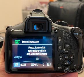 È stata usata con molta attenzione. Ha obiettivi da 18-55 mm. Viene fornita con 2 batterie e 1 batteria fittizia. È incluso anche un cavo per utilizzarla come webcam. È inclusa una custodia per il trasporto.