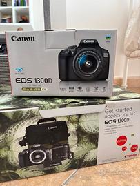 Reflex canon usata pochissimo. Perfettamente funzionante. -EOS 1300D Body -Oculare mirino -Tracolla per fotocamera EW-400D -Batteria LP-E10 -Sportello del vano batteria -Caricabatteria LC-E10 -Cavo di alimentazione per carica batteria -Scatola originale
