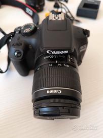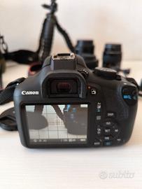 Vendo Canon EOS 1300D, acquistata a dicembre 2018 con: - Caricabatterie originale Canon + caricabatterie Patona USB - Borsa per il trasporto con scomparti interni regolabili - Obiettivo Canon 18-55 mm, obiettivi Canon 80-200 mm e 35-80 mm (vecchi, di Canon degli anni 90, ma funzionanti) obiettivo Yongnuo fisso 50 mm - Gorillapod - Gancio per spallaccio dello zaino - Filtri Neewer ND2, ND4, ND8, ND1000, UV, FLD, CPL