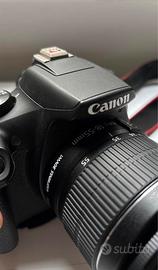 Canon EOS 2000D + obiettivo 18-55 + accessori Vendo fotocamera reflex Canon EOS 2000D in condizioni eccellenti, perfettamente funzionante. Ideale per chi vuole iniziare con la fotografia o per uso amatoriale. Il kit comprende: • Corpo macchina Canon EOS 2000D • Obiettivo 18-55 mm • Caricabatterie originale • 2 batterie originali Canon • Scheda di memoria da 4 GB • Cover protettiva in silicone per la fotocamera • Porta macchina fotografica / custodia La fotocamera è stata usata meticolosamente e sempre tenuta con grande cura. Non presenta alcun segno o graffio, come si può vedere chiaramente dalle foto. Vendo per passare a modello successivo