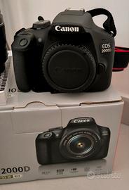 Vendo kit fotografico completo Canon EOS 2000D. Tenuta sempre con cura, nessun difetto, utilizzata un paio di volte, perfettamente funzionante e pronto all’uso. Incluso nel kit: Fotocamera reflex Canon EOS 2000D Obiettivo Canon EF-S 18-55mm (kit) Secondo obiettivo Canon zoom Batteria + caricabatterie originale Scheda memoria SD 32gb Cavi originali Scatola originale Treppiede Hama Star 63 Borsa e custodia per treppiede e macchina fotografica