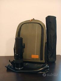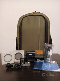 Vendo, in condizioni PARI al nuovo: - Fotocamera Canon EOS 2000D nemmeno cinquanta scatti, con batteria di riserva, caricabatterie e cinghia; - Obiettivo Canon EF-S 18-55mm, con sportello anteriore e posteriore; - Obiettivo Canon EF-S 55 250mm, con sportello anteriore e posteriore; - Teleobiettivo Jintu 420-800mm, con sportello anteriore e posteriore; - Treppiedi da 127cm, con custodia; - Zaino Fotografico Tarion, con sacca impermeabile; - Filtro Polarizzatore e Filtro Protezione UV Amazon Basics; - Card di Memoria 128 Gb; - Kit Pulizia. Tutto, dalla macchina, agli obiettivi, agli accessori, è in stato pari al nuovo.