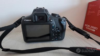 Kit fotocamera Canon EOS 2000D con obiettivo EF-S 18-55mm. - Corpo macchina fotografica. - Obiettivo Canon EF-S 18-55mm. - Caricabatterie. - Borsa per fotocamera. - Circa 5000 scatti