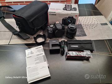 Propongo in vendita fotocamera professionale Canon EOS 2000D EF-S 18-55 IS II kit (completa di obiettivo) + borsa tracolla originale Canon + 3 lenti polarizzatori POLAROID La camera ha 2 anni di vita, ed e stata utilizzata nei primi 5 mesi dell'acquisto per passione, ma ad oggi non più utilizzata per mancanza di tempo. Si presenta in condizioni pari al nuovo, e la cedo completa di: obiettivo, batteria e caricabatteria, tracolla fotocamera originale, scatola originale completa di manuale d'uso. Insieme alla vendita includo 1 borsa portafotocamera a tracolla originale Canon e 3 polarizzatori utilizzati in qualche occasione. Vendo tutto in blocco. Per info contattatemi in privato.