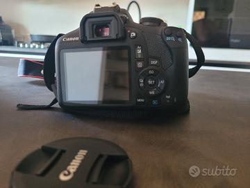 Macchina fotografica canon eos 2000d con caricatore per la batteria e custodia + obiettivo 18-55mm. Vendo per inutilizzo. Prodotto praticamente nuovo
