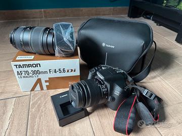 Vendo Canon EOS 2000D e teleobiettivo TAMRON AF70-300mm. Utilizzati 3 volte, pari al nuovo.