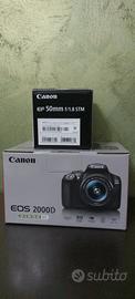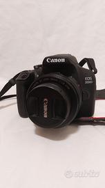 Vendesi macchina fotografica Canon eos 2000d con obiettivo di kit nuova ancora in garanzia con scontrino ho in più una batteria un obiettivo ef 50 mm f/1.8 STM piu zaino da portare macchina fotografica.