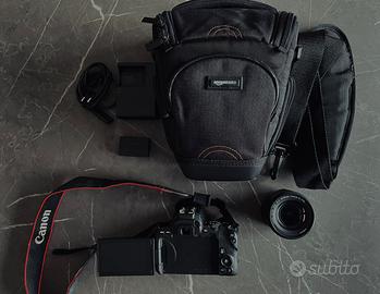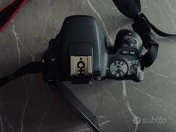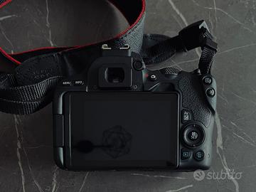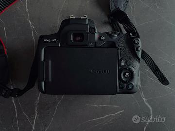 Vendo Canon EOS 200D usata pochissimo (meno di 20.000 scatti). La fotocamera presenta normali segni di utilizzo e un piccolo graffio sul frontale (sul pannello con la scritta Canon), niente che comprometta funzionalità o estetica generale — tutto visibile nelle foto.