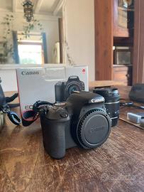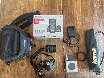 Vendo fotocamera Canon EOS 200D, utilizzata pochissimo e in ottime condizioni, completa di: