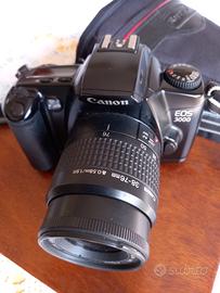 Macchina fotografica Canon EOS 3000 38-76mm, 0,58/1,9ft, custodia originale Reporter, con obbiettivo Canon Zoom Lens EF 38-76 mm, 1:4,5-5.6, 52mm, come nuova, mai usata, no resi