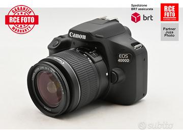Canon EOS 4000D + EF-S 18-55mm f/3.5-5.6 III Pari al nuovo Scatti 100 Batteria Carica batterie Cavo alimentazione Scatola Tappo frontale Tracolla GARANZIA 2 anni COD: 020DRECN0000421857 RITIRIAMO il tuo USATO per NUOVO o USATO RCE FOTO il più grande mercato di usato fotografico digitale GARANTITO d'Italia Per informazioni-prenotazioni-acquisti, chiamare direttamente in negozio: Le telefonate avranno precedenza sulle email. Spedizione con Bartolini assicurata in tutta Italia. RCE Foto Torino - Viale Unione Sovietica 585/5 Torino tel. [SKU 421857B]