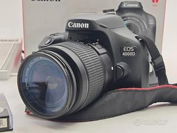 Vendo kit Canon EOS 4000D + obiettivo 15-55 EF-S III, completa di filtro Anti-UV Polaroid, caricabatteria originale, batteria originale, cinghia originale e tutti i tappi. Sono presenti anche la satola originale (come da foto) e tutta la documentazione cartacea.