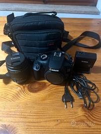 Nella confezione: corpo Eos 4000D, oculare mirino, tracolla per fotocamera Ew-400D, custodia a tracolla, Batteria Lp-E10, Caricabatterie LC-E10E, cavo di alimentazione per caricabatterie.
