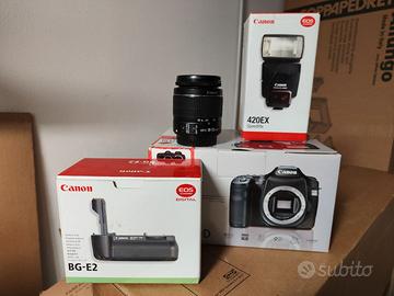 Canon EOS 40d con obbiettivo Canon EF 18-55 USM, Flash Canon Spedlite 420 EX e Battery grip Canon BG-E2. Con scatole originali. Preferibile consegna a mano per verifica qualità e funzionalità. Posso anche spedire