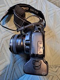 Canon Eos 450D con battery grip e 2 batterie. perfettamente funzionante. non so quanti scatti ha. PS. LENTE NON COMPRESA 70€