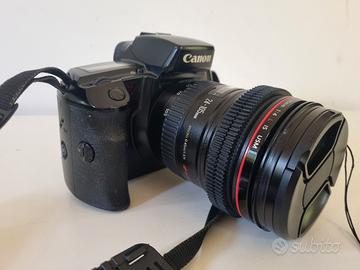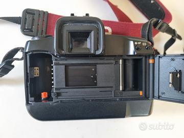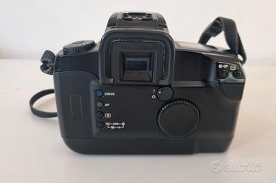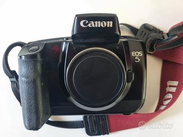 vendo Corpo camera Eos 5 analogica. Tenuta bene con cinghia originale. Priva di batteria. d'altronde non potrebbe essere ancora buona visto l'età. prezzo ottimo, vista e piaciuta.