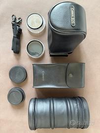 Vendo kit Canon EOS 500 analogica 35 mm completo di obiettivi, flash, custodie e accessori originali, tutto in condizioni eccellenti e perfettamente funzionante. Corpo e ottiche sono stati usati pochissimo, conservati sempre con cura. Contenuto del kit Corpo macchina: Canon EOS 500 (reflex analogica 35 mm) con cinghia tracolla Canon EOS nera originale (mai usata) seconda tracolla Canon originale larga, blu e rossa elegante custodia Canon EH8‑L tipo pelle, dedicata alla EOS 500 2 batterie Duracell CR123 nuove già inserite, pronte all’uso Obiettivo standard: Canon EF 35–80 mm f/4–5.6 III autofocus funzionante zoom e ghiera di messa a fuoco fluidi lenti pulite, senza graffi né funghi, solo minima polvere interna fisiologica per l’età. Teleobiettivo: Canon EF 75–300 mm f/4–5.6 II Ultrasonic (USM) versione USM, autofocus più silenzioso e rapido rispetto alla versione non‑Ultrasonic usato pochissimo, condizioni estetiche e meccaniche davvero ottime astuccio originale Canon in dotazione lenti senza graffi e senza funghi, solo leggera polvere interna fine, normale per uno zoom di questo tipo e senza impatto sulla resa. Flash: Canon Speedlite 420EZ perfettamente funzionante, testato con 4 batterie AA (NON incluse nel kit) astuccio originale Canon in dotazione. Filtri (diametro 58 mm): filtro UV Kenko 58 mm filtro Rokunar Circular PL 58 mm (polarizzatore circolare) Test eseguiti (senza pellicola): Corpo: accensione ok, selettore modalità ok, otturatore provato a vari tempi (da 1s a rapidi) con funzionamento regolare, esposimetro reattivo al variare della luce. Obiettivi: autofocus rapido e preciso su soggetti fermi, ghiere zoom e fuoco fluide, diaframmi funzionanti. Lenti senza graffi né funghi; solo minima polvere interna fine, normale per ottiche di questa età. Flash 420EZ: testato con 4 batterie AA, lampo e ricarica regolari, sincronizzato correttamente con la EOS 500. Kit ideale per chi vuole iniziare con la fotografia analogica o per appassionati Canon.