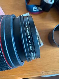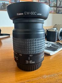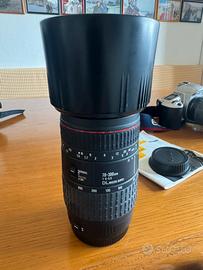 Corpo macchina canon EOS500N obbiettivo canon 28/80 3.5/5.6 obbiettivo sigma 70/300 4/5.6 entrambi autofocus parasole e lente protettiva. Flash addizionale (sportello batterie rotto ma funzionante) 2 rullini e manuali